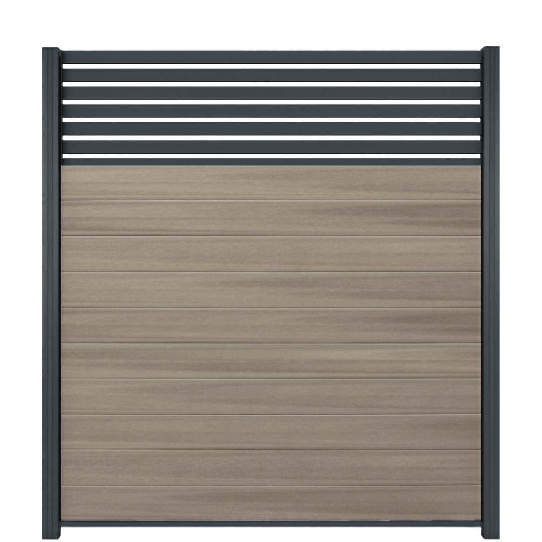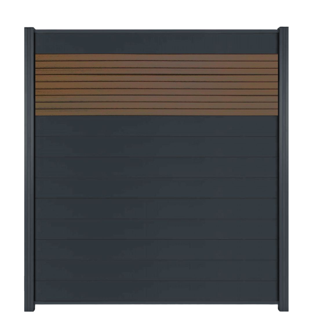 De Fency Sight serie biedt een moderne en stijlvolle oplossing voor iedereen die op zoek is naar een strakke, onderhoudsarme tuinafscheiding. De schuttingen hebben een slank en eigentijds design, waarbij composiet planken worden gecombineerd met een sterke aluminium structuur voor een luxe en tijdloze uitstraling.
